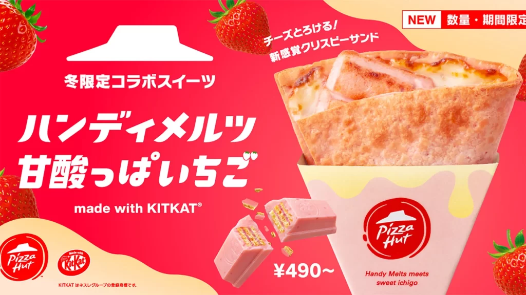 A Pizza Hut Japão volta a chamar atenção ao relançar uma de suas criações mais inusitadas: a pizza Handy Melts com KitKat, agora em versão morango. O produto, que já havia causado curiosidade em edições anteriores, retorna com uma proposta agridoce ainda mais evidente — combinação que dialoga diretamente com o paladar japonês e com datas sazonais.