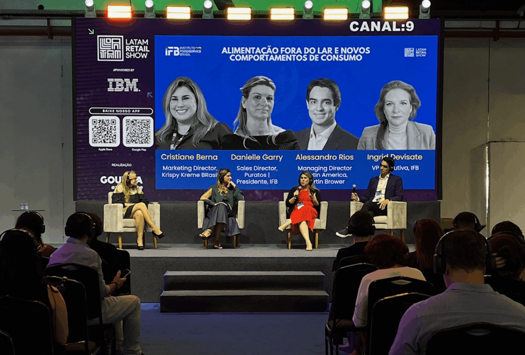 Durante o Foodservice Meeting, que integrou a programação do Latam Retail Show 2025, o painel “Alimentação fora do lar e novos comportamentos do consumidor” trouxe uma reflexão sobre como a digitalização, a sustentabilidade e a busca por conveniência estão redesenhando a relação entre marcas e consumidores. A conversa reuniu Alessandro Rios, Managing Director da Martin Brower América Latina, Cristiane Berna, Diretora de Marketing da Krispy Kreme BR , e Danielle Garry, Sales Director da Puratos e Presidente do IFB, sob a mediação de Ingrid Devisate, VP Executiva do instituto.