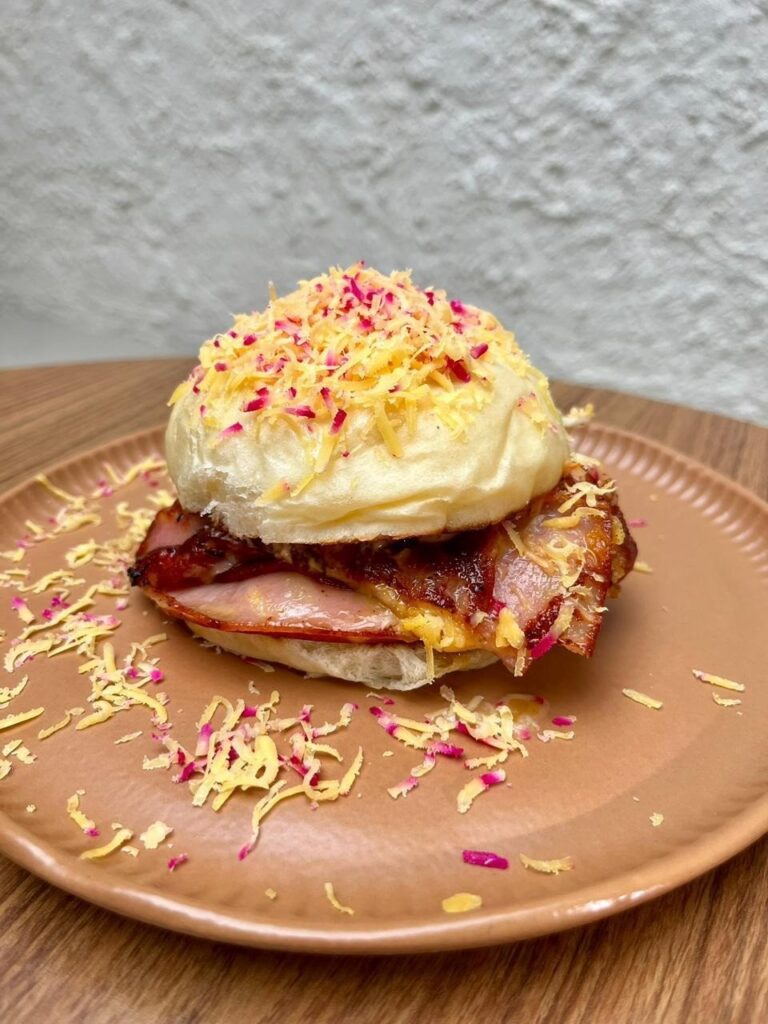 O sanduíche “Eixo do Sabor” combina influências da Bahia, São Paulo e Itália em um preparo que equilibra tradição e criatividade. O pão delícia levemente tostado recebe camadas de mortadela Italiana Giovanni Ceratti, queijo reino derretido, maionese de pimenta biquinho e um toque sutil de melaço de cana, criando contraste entre salgado, picante e adocicado. O “Travessia Atlântica” é composto pelo pão delícia levemente tostado, recheado com presunto cru Ceratti, queijo coalho derretido, pesto de coentro e amendoim, finalizado com geleia artesanal de manga e pimenta-da-Jamaica. Fresco, leve e autêntico.