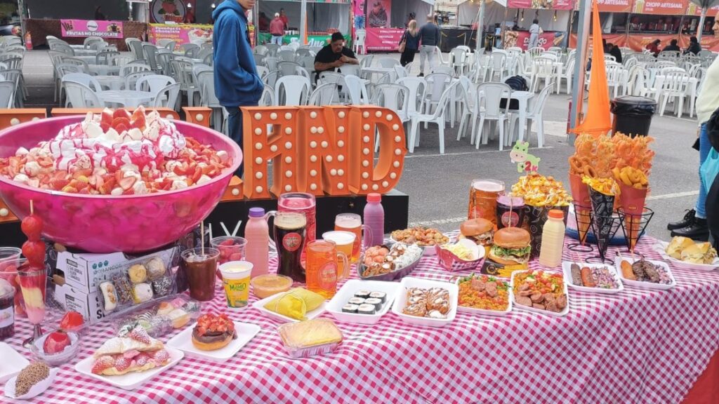 Além dos doces, o evento reúne bistrôs gastronômicos com opções salgadas variadas, como churrasco bovino, hambúrgueres, lanches, porções de batata e outros clássicos da comida de rua. Churros, bubble waffles e doces artesanais completam a oferta, ampliando o leque de consumo ao longo do dia.