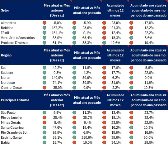 No recorte setorial, o segmento de bebidas avançou 157,2% no mês de março deste ano em comparação a fevereiro, seguido pelo têxtil (154,1%). O índice geral indica crescimento de 14,9% em março na comparação com fevereiro.