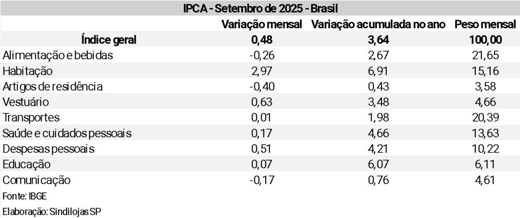 Segundo análise do Sindilojas-SP, os números do mês revelam uma transição importante: de um lado, o aumento no custo da energia elétrica voltou a pressionar o índice; de outro, a sequência de quedas nos alimentos tem funcionado como contrapeso, evitando uma alta mais expressiva do IPCA.