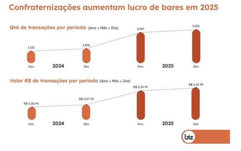 Para Douglas Barrochelo, CEO da Biz, os números refletem uma mudança clara na dinâmica de trabalho e convivência ao longo de 2025. “Esse crescimento de 117% vai além de um indicador econômico. Ele reflete uma mudança no comportamento dos colaboradores, impulsionada pelo retorno mais consistente ao trabalho presencial. Com mais empresas retomando atividades 100% presenciais ou ampliando a frequência no escritório, as interações do dia a dia voltaram a acontecer. E, no fim do ano, esse convívio se estende para fora do expediente, em confraternizações organizadas entre os próprios times, o que se reflete diretamente no aumento do consumo em bares e restaurantes”, analisa.