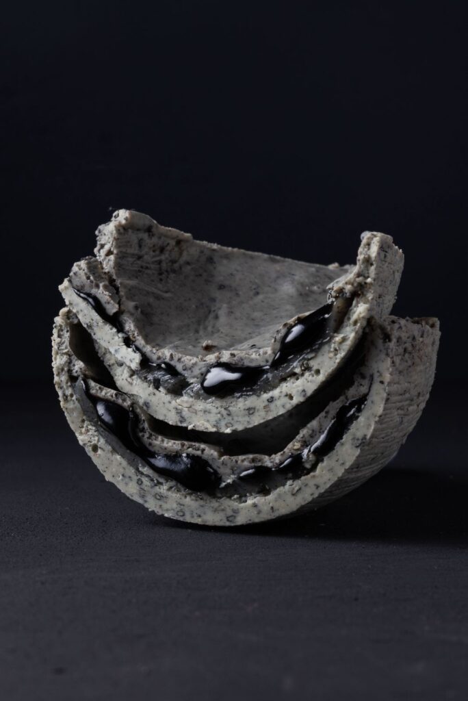 Chocolate branco com gergelim preto, ganache, caramelo de shoyu e gengibre