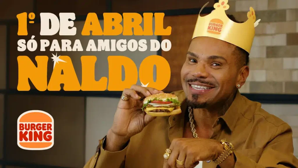 Conhecido por declarações que viralizaram na internet, Naldo Benny foi escolhido como o rosto da campanha, que brinca com sua imagem de forma leve e bem-humorada. No vídeo divulgado pelo Burger King, o artista ironiza a fama de suas histórias inusitadas, afirmando que a oferta é “real” — mesmo sendo lançada em 1º de abril. A estratégia traduz o posicionamento da marca, que frequentemente utiliza o humor e a cultura pop como ferramentas de comunicação.