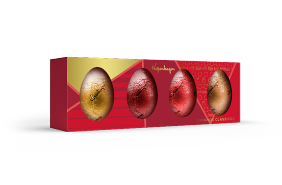 A Kopenhagen reúne na categoria lembranças opções como, o Pouch de Ovinhos ao Leite, ideal para compartilhar; a Régua de Ovinhos Clássicos, que traz versões mini de sabores tradicionais (Ovinho Nhá Benta, Ovinho Lajotinha, Ovinho Crocantinho e Ovinho Língua de Gato); os Coelhos de Chocolate ao Leite e os Mini Ovinhos Língua de Gato Trufados e as clássicas cenouras de chocolate. Entre os lançamentos, aparecem os Coelhinhos Recheados e o Ovinho Nhá Benta, que leva o marshmallow característico da marca para um novo formato.
