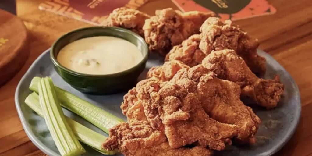 No prato, nada de versão reduzida ou produto promocional secundário. A Kookaburra Wings mantém sua configuração tradicional, com 10 sobreasas de frango empanadas, temperadas com o blend exclusivo da marca, acompanhadas de molho tipo Blue Cheese e talos de aipo. Um item pensado para compartilhar, alinhado a encontros informais e mesas coletivas — exatamente o ambiente que o Outback busca estimular.