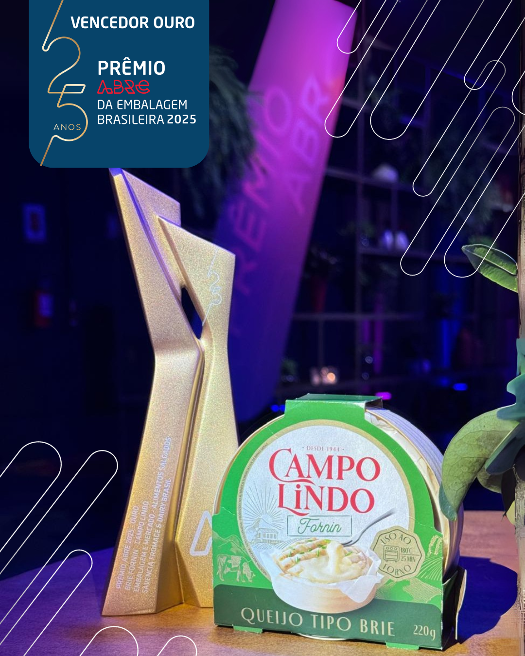 O Brie Fornin da Campo Lindo conquistou o troféu de ouro graças à sua embalagem exclusiva, composta por aro de madeira e papel resistente ao calor, desenvolvida para ir diretamente ao forno ou à air fryer. Trata-se do primeiro brie brasileiro criado para esse tipo de preparo, combinando praticidade, conveniência e uma experiência gastronômica diferenciada.