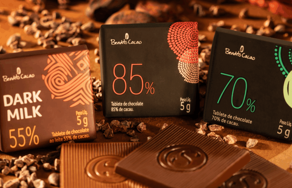 As novidades somam-se ao portfólio da linha que também conta com trufa 55% (30g), trufa 70% (13,5 g), tablete 55% (20 g), tablete Dark Milk (5 g e 100 g), tablete 70% (5 g), tablete 85% (5 g) e tablete Dedo de Deus 67% (100 g). Há ainda as opções para presente como a caixa Bendito Cacao 55% Mini Show (108 g), com bombons de chocolate intenso recheados com trufa de chocolate intenso, e a caixa Bendito Cacao (170g) com bombons sortidos nos sabores intenso, trufa com nibs de cacau e morango.