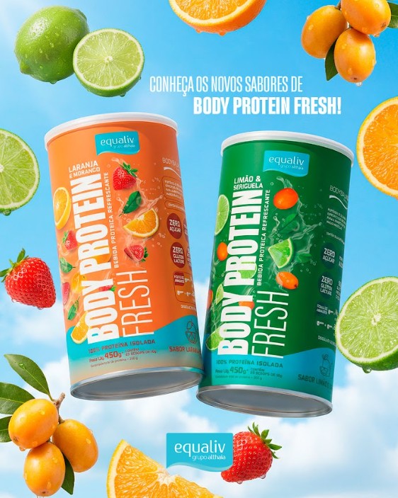 A Equaliv, marca do grupo farmacêutico Althaia, amplia sua linha Body Protein Fresh com dois novos sabores tropicais e refrescantes: laranja com morango, e limão com seriguela. Desenvolvida com BodyBalance®, tecnologia alemã de peptídeos de colágeno, a proteína contribui para ganho de massa muscular, redução de gordura, aumento de força e recuperação pós-treino.