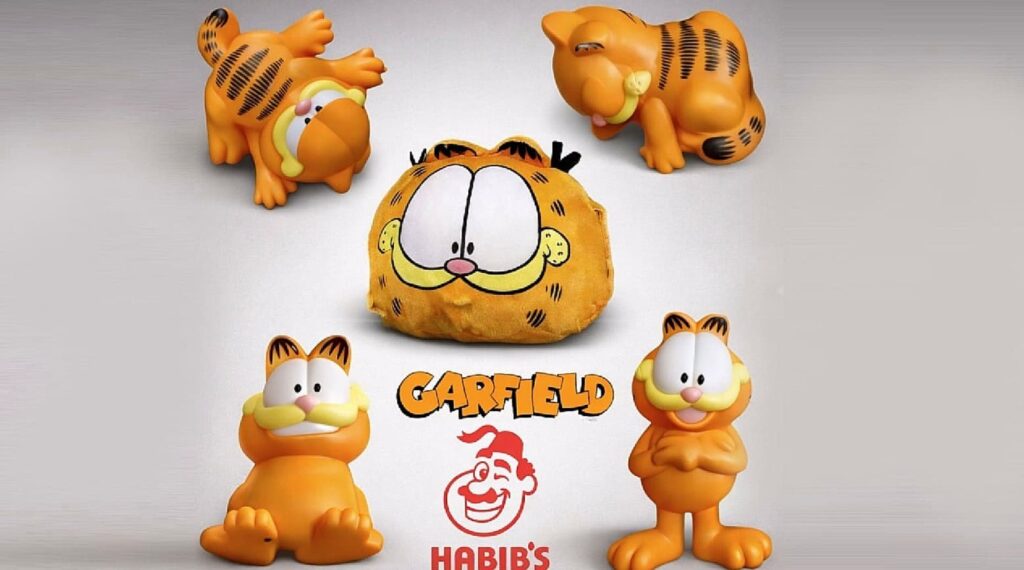 Diferentemente da campanha anterior, que incluía mecânicas com cupons e valores adicionais para itens premium (como a touca interativa do Pernalonga), a nova ação com Garfield deve priorizar a aquisição via Kits Habib’s e compras diretas pelo site e nas lojas físicas.