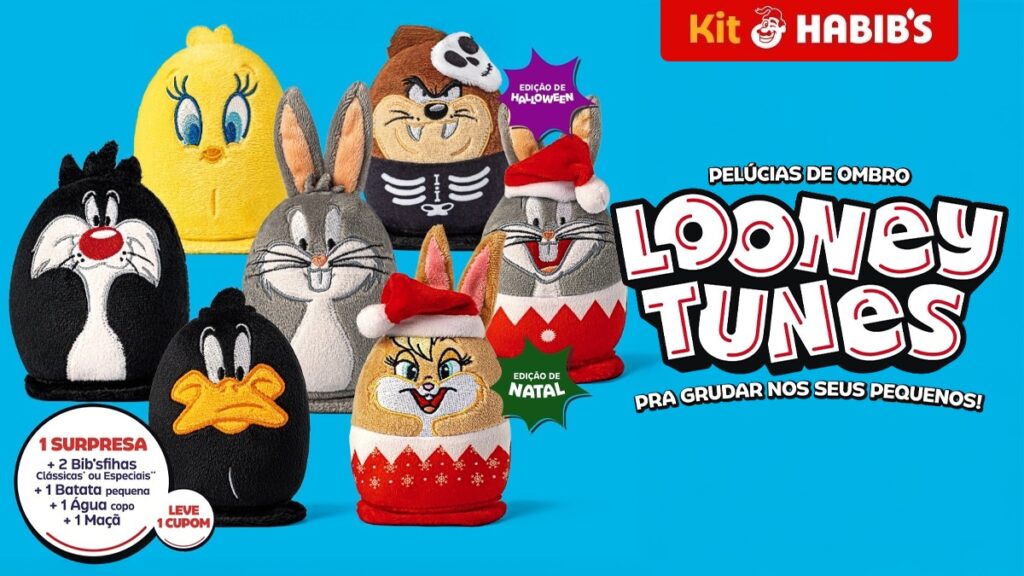 O Habib’s lançou uma nova edição do Kit Habib’s, trazendo personagens clássicos dos Looney Tunes em versões de pelúcia magnética que prometem agradar tanto crianças quanto adultos nostálgicos. A coleção, iniciada em 26 de setembro, conta com sete personagens da Warner Bros. Entertainment em modelos exclusivos para colecionadores e fãs.