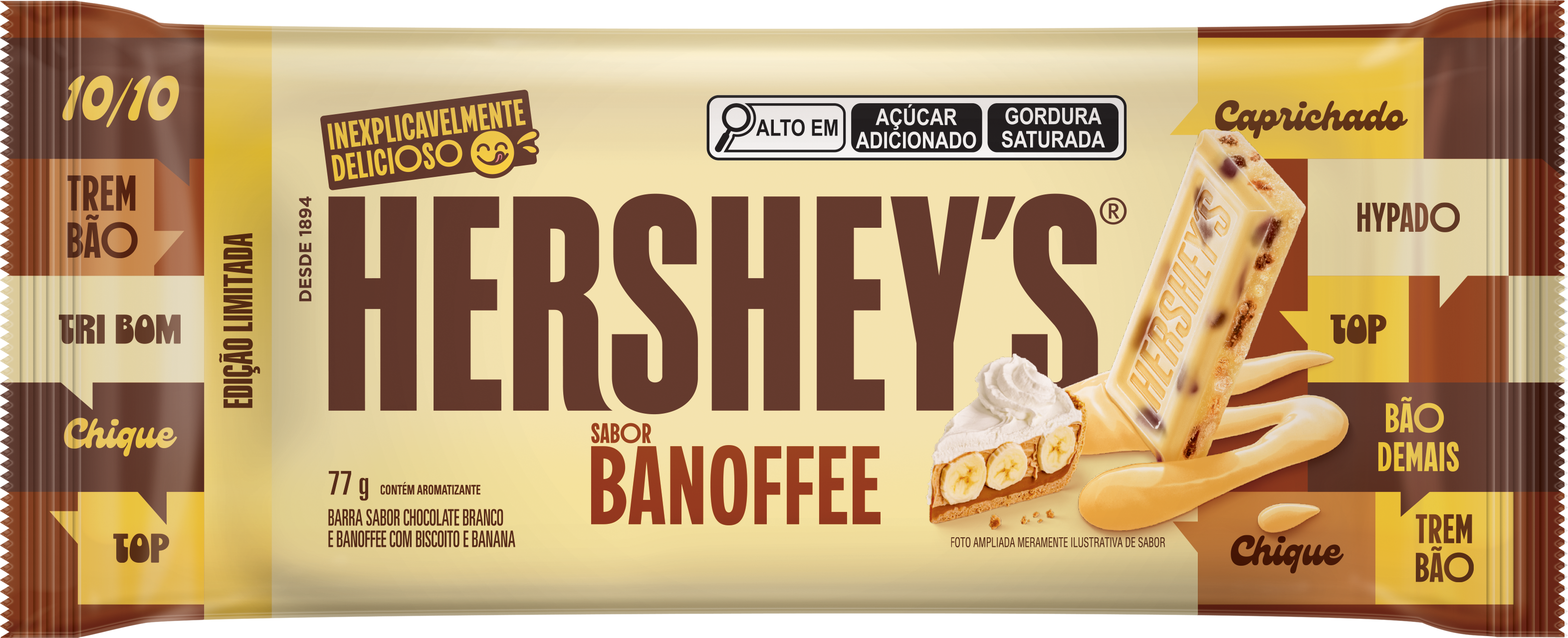 Conhecida por inovar em sabores, Hershey’s expande seu portfólio de edições limitadas com o lançamento da linha Hershey’s Inexplicavelmente Delicioso, que inclui uma barra sabor Banoffee e um wafer sabor Cheesecake de Goiabada, ideais para quem busca sair da rotina com a certeza de uma experiência diferenciada.