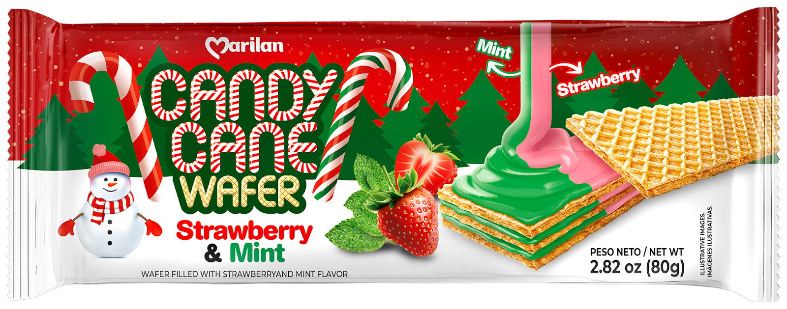 - Marilan Wafer Candy Cane: combinação inédita de menta e morango, inspirada nas tradicionais bengalas que decoram as árvores de Natal.