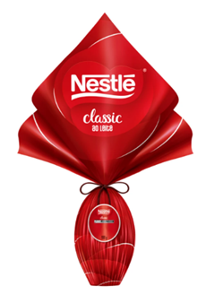 O Ovo de Páscoa Nestlé® Classic® Ao Leite (199g) traz a receita tradicional de chocolate ao leite da marca em uma versão clássica para a data. Com textura macia e perfil sensorial equilibrado, o produto aposta na familiaridade e no sabor reconhecido pelo consumidor. Posiciona-se como opção acessível para consumo próprio ou para compartilhar em celebrações de Páscoa. É sem glúten e contém lactose.