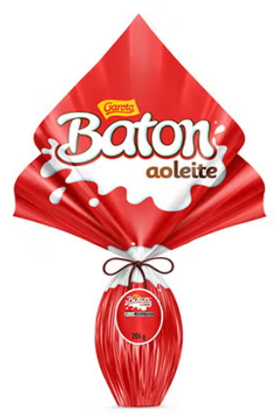 O Ovo de Páscoa Garoto® Baton® Chocolate ao Leite (204g) leva para a temporada o sabor icônico do Baton®, combinando chocolate ao leite cremoso com apelo jovem e divertido. Com perfil afetivo e textura suave, o produto se posiciona como opção leve e compartilhável no portfólio de Páscoa, ideal para celebrações em família.