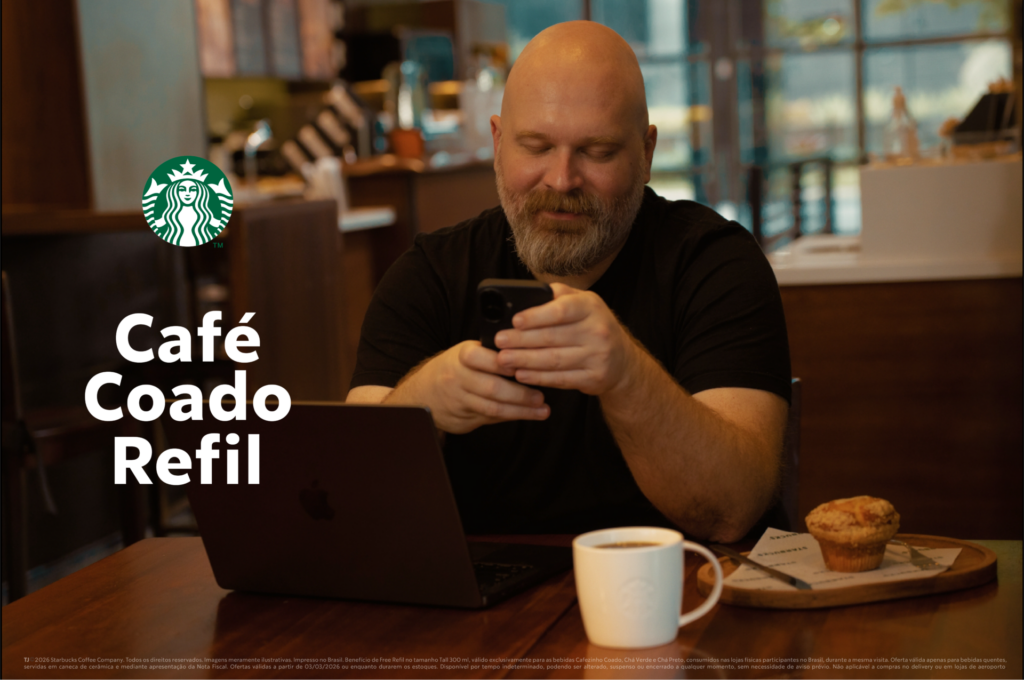 “O Café Coado Refil celebra uma dinâmica que já faz parte das nossas lojas: pessoas que passam o dia entre reuniões, estudos ou produção de conteúdo e escolhem a Starbucks como seu ponto de apoio. É uma forma de reconhecer essa relação de longa data e acompanhar nossos clientes em cada momento. Dessa forma, reforçamos o diferencial da marca ao ir além do consumo, destacando nossas lojas como um espaço para permanecer por mais tempo, acompanhado de uma boa xícara de café”, afirma Filipe Reis, head de marketing da Starbucks no Brasil.