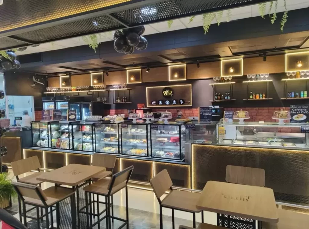 O Café Bar ainda está em fase de teste, mas já demonstra potencial como diferencial competitivo. O espaço oferece desde cafés e pães de queijo até cervejas e petiscos pensados para o happy hour. A proposta é estimular que o cliente permaneça mais tempo na loja, consumindo no local ou levando os produtos para casa. “É um ambiente que atende toda a família, especialmente os públicos B e C, com opções que vão de salgados e pizzas até bebidas”, completa Alcolezi.