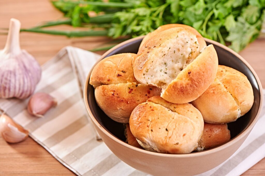 Sirva os pães ao lado de queijos, frutas secas, castanhas, pastinhas e geleias. O pão de alho original combina com cream cheese e patês; o de calabresa harmoniza com chutneys; e o de requeijão cremoso acompanha bem embutidos.