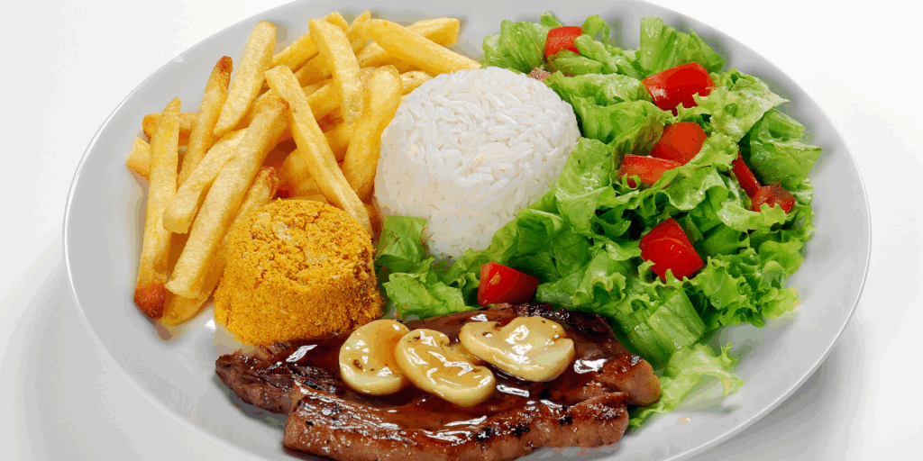 Pesquisas mostram que iniciar a refeição com salada ou legumes cozidos reduz o impacto glicêmico do prato principal. Isso acontece porque as fibras formam uma espécie de “barreira” que retarda a absorção dos carboidratos.