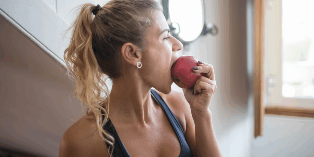 - Frutas e vegetais fibrosos (como maçã, cenoura e pepino): estimulam a produção de saliva e ajudam a “limpar” naturalmente os dentes.