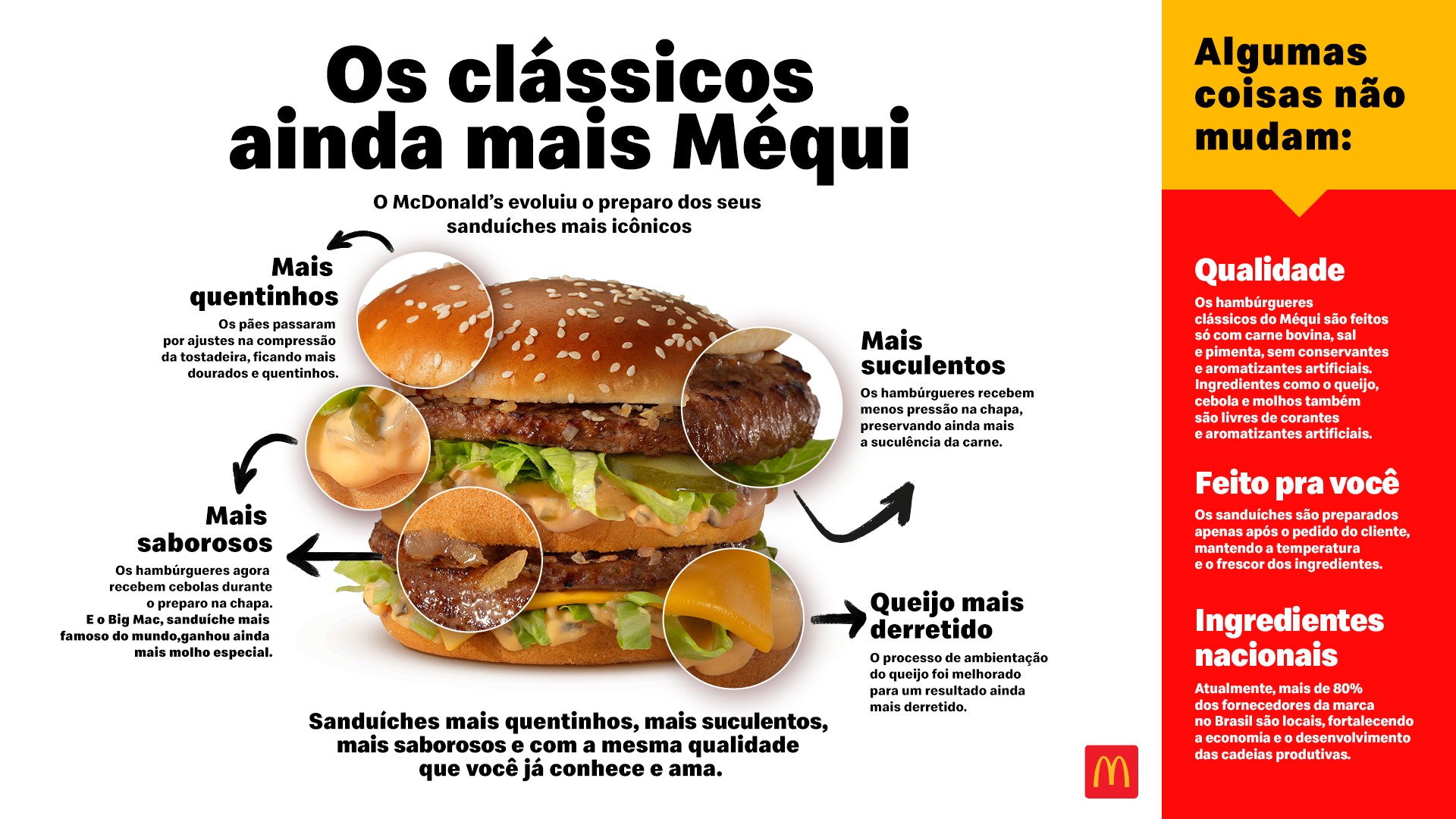 Mais quentinho, mais suculento e mais saboroso: McDonald’s evolui preparo dos sanduíches clássicos Na cozinha mais famosa do mundo, ingredientes ganham novo preparo e reforçam o compromisso da marca com a experiência do cliente Os sanduíches clássicos do Méqui estão